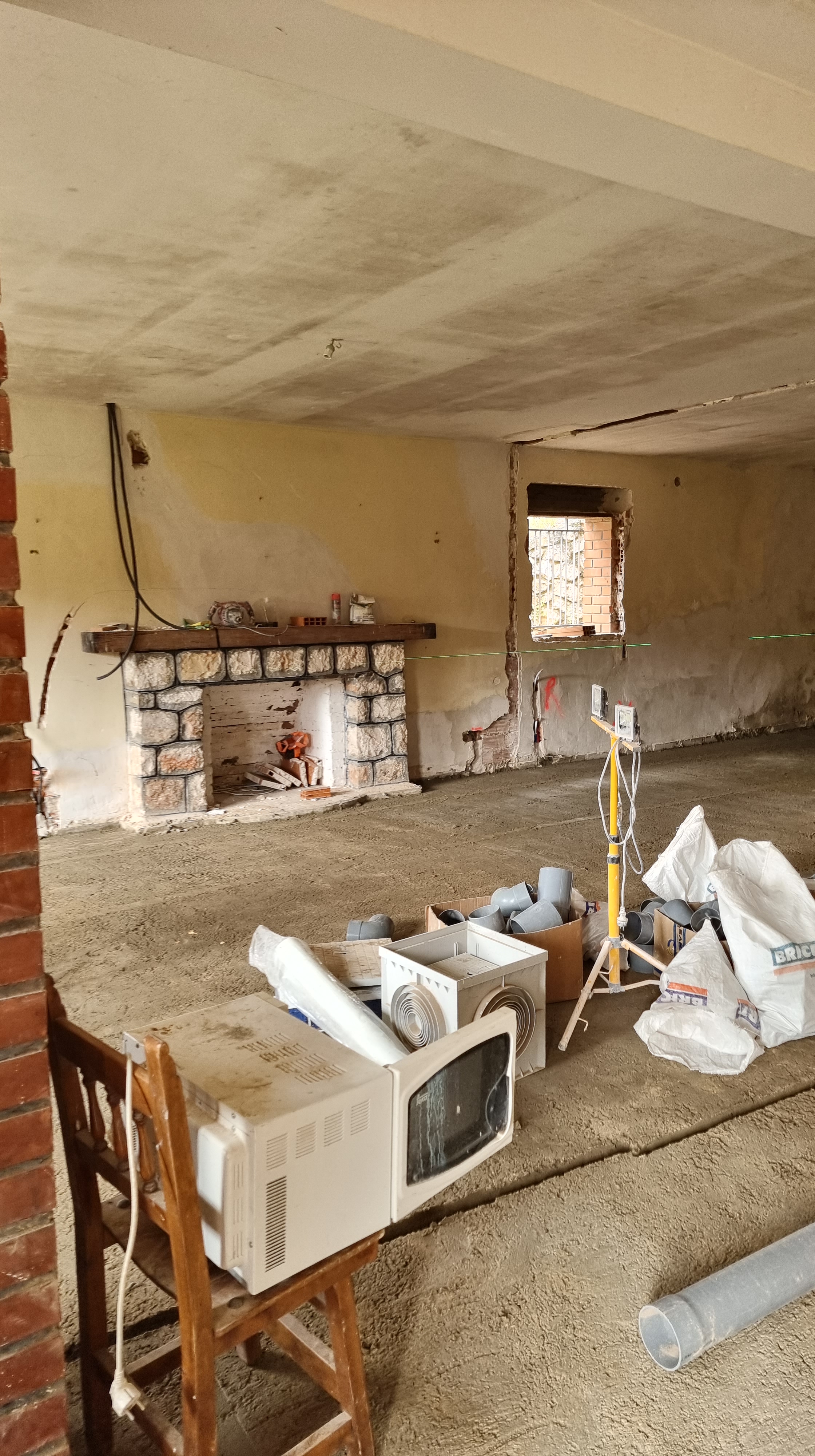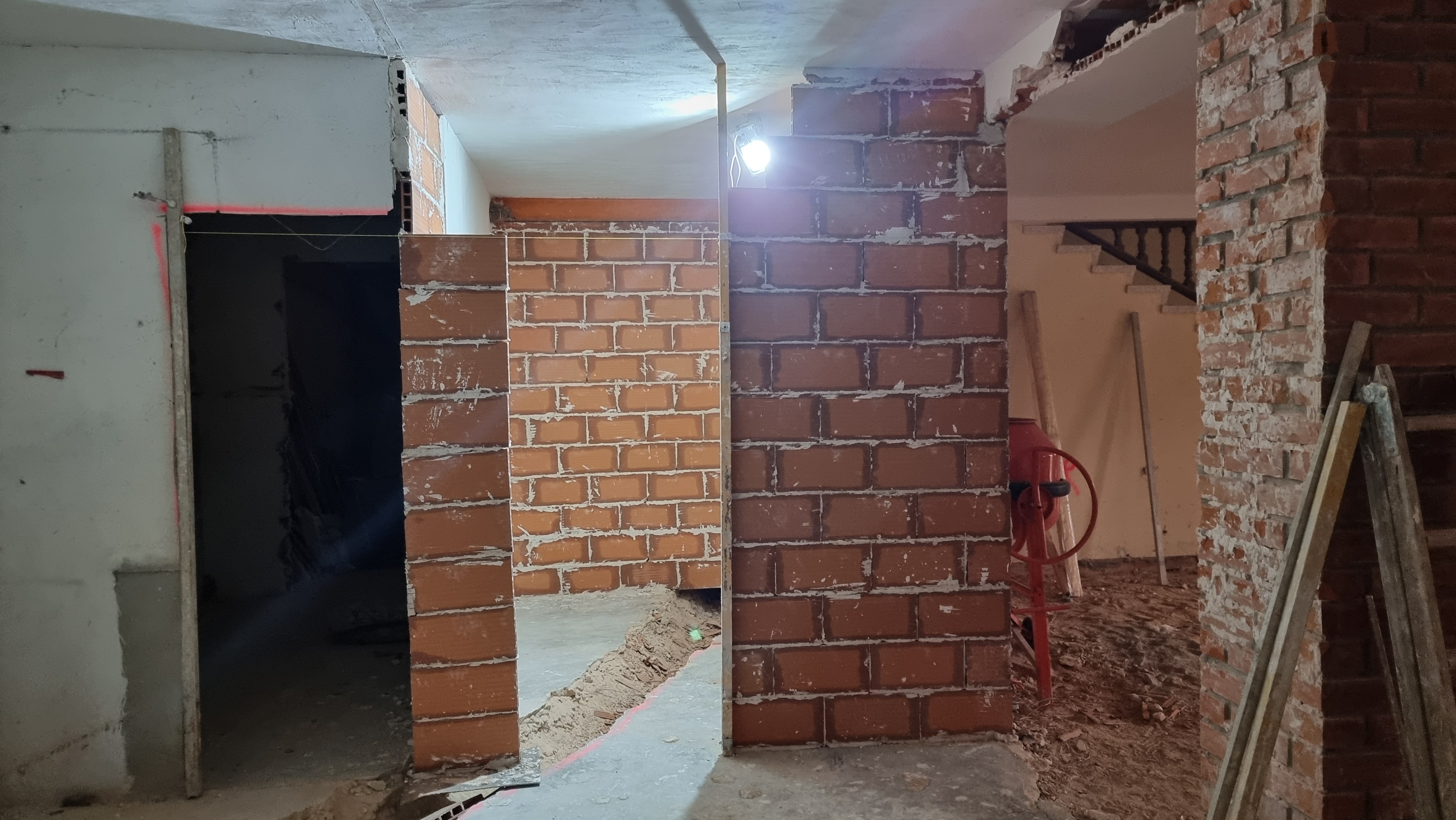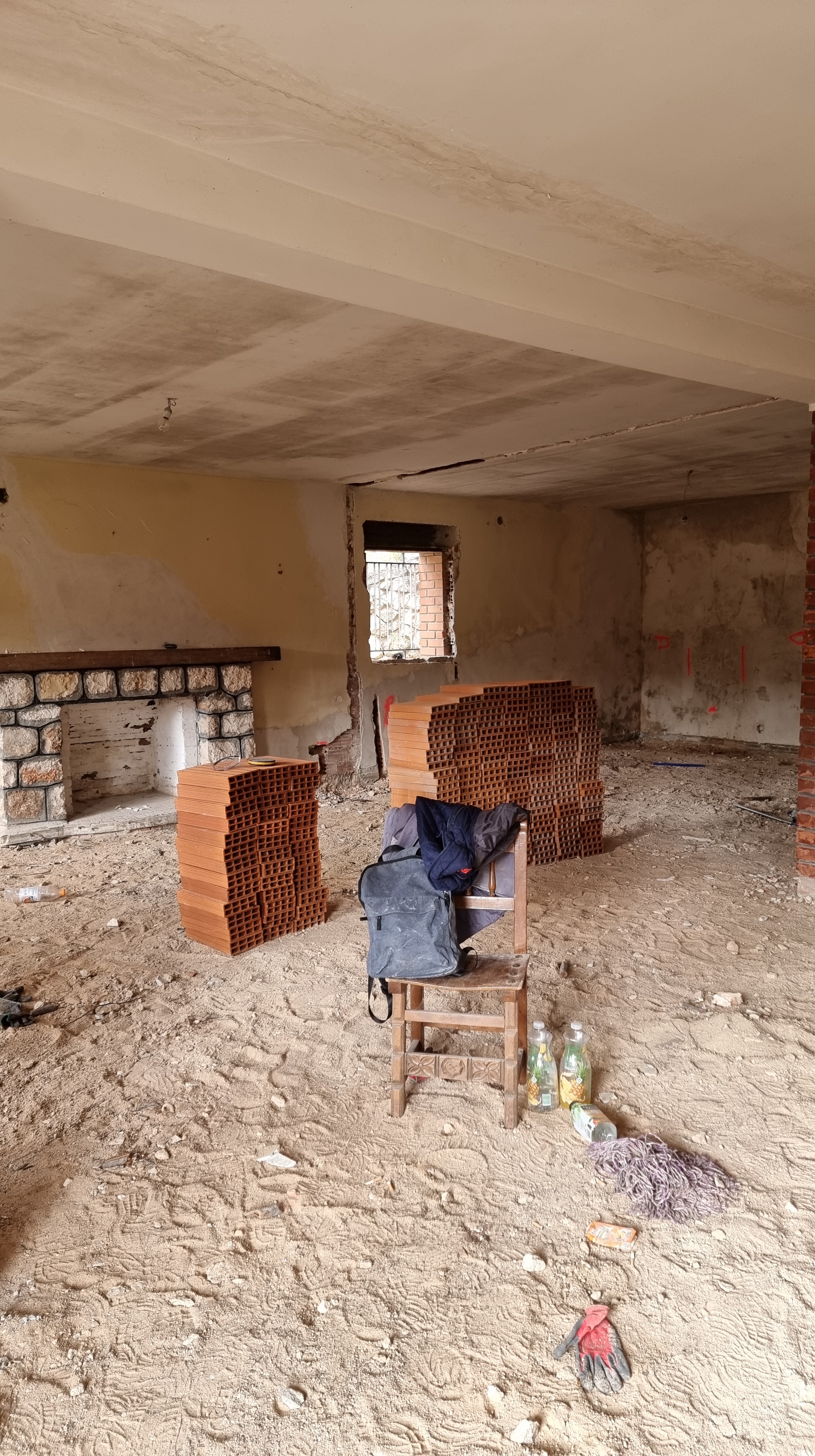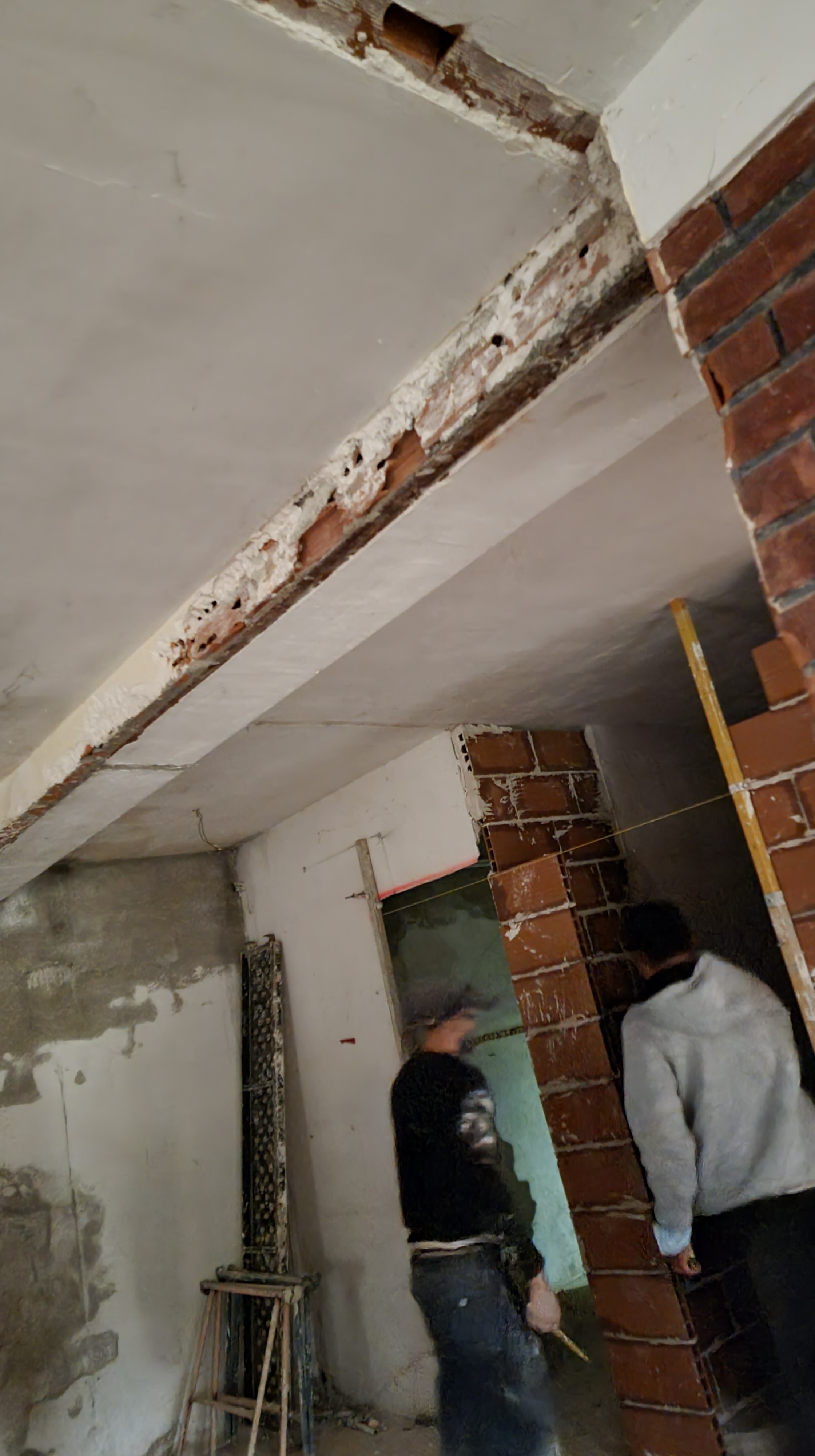 I look at the video. It was the back wall of the ground floor. The work had recently started and everything was broken and dusty. Everything looked fine, but it only took a couple of seconds to see an unusual movement on the wall. It was a waterfall, rushing down from the upper floor to the lower floor.