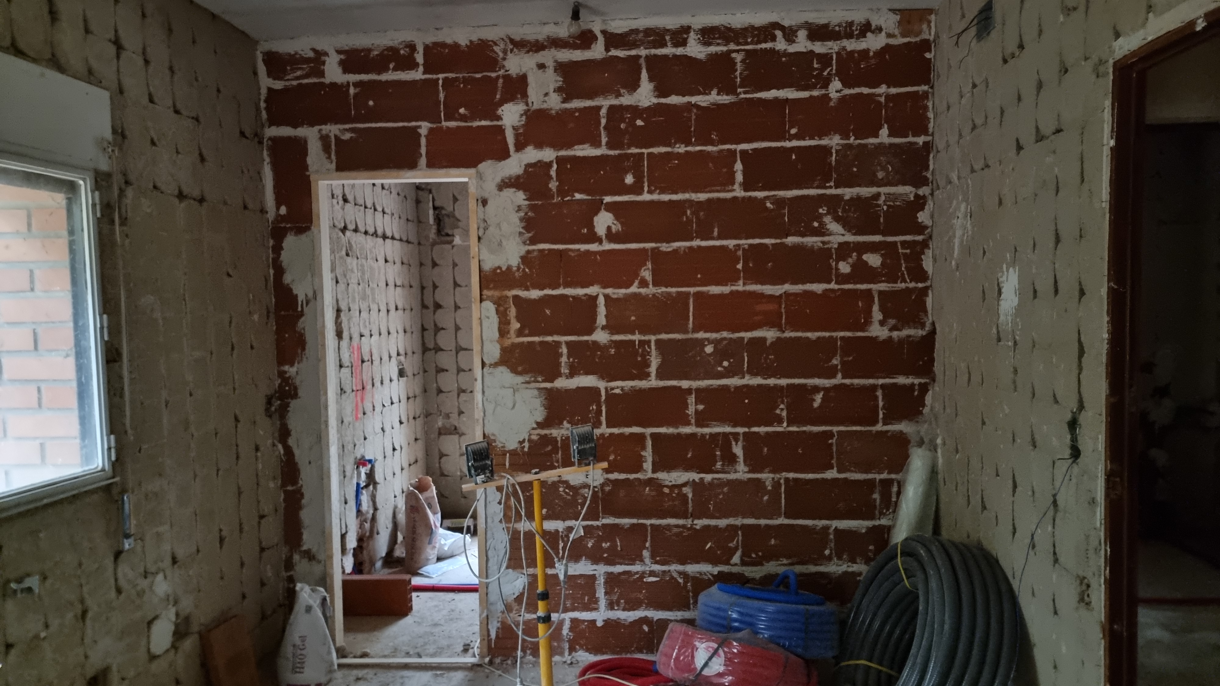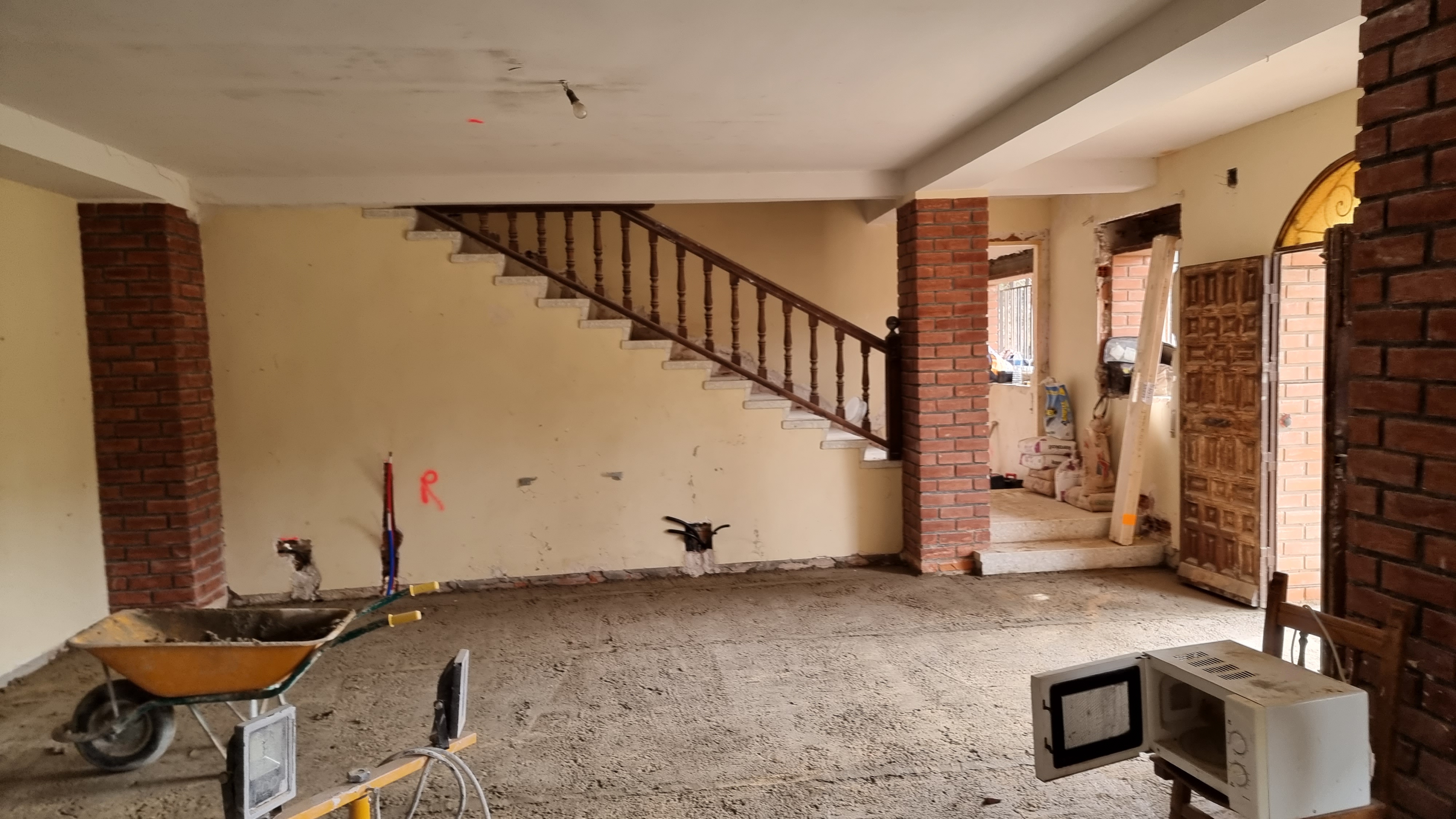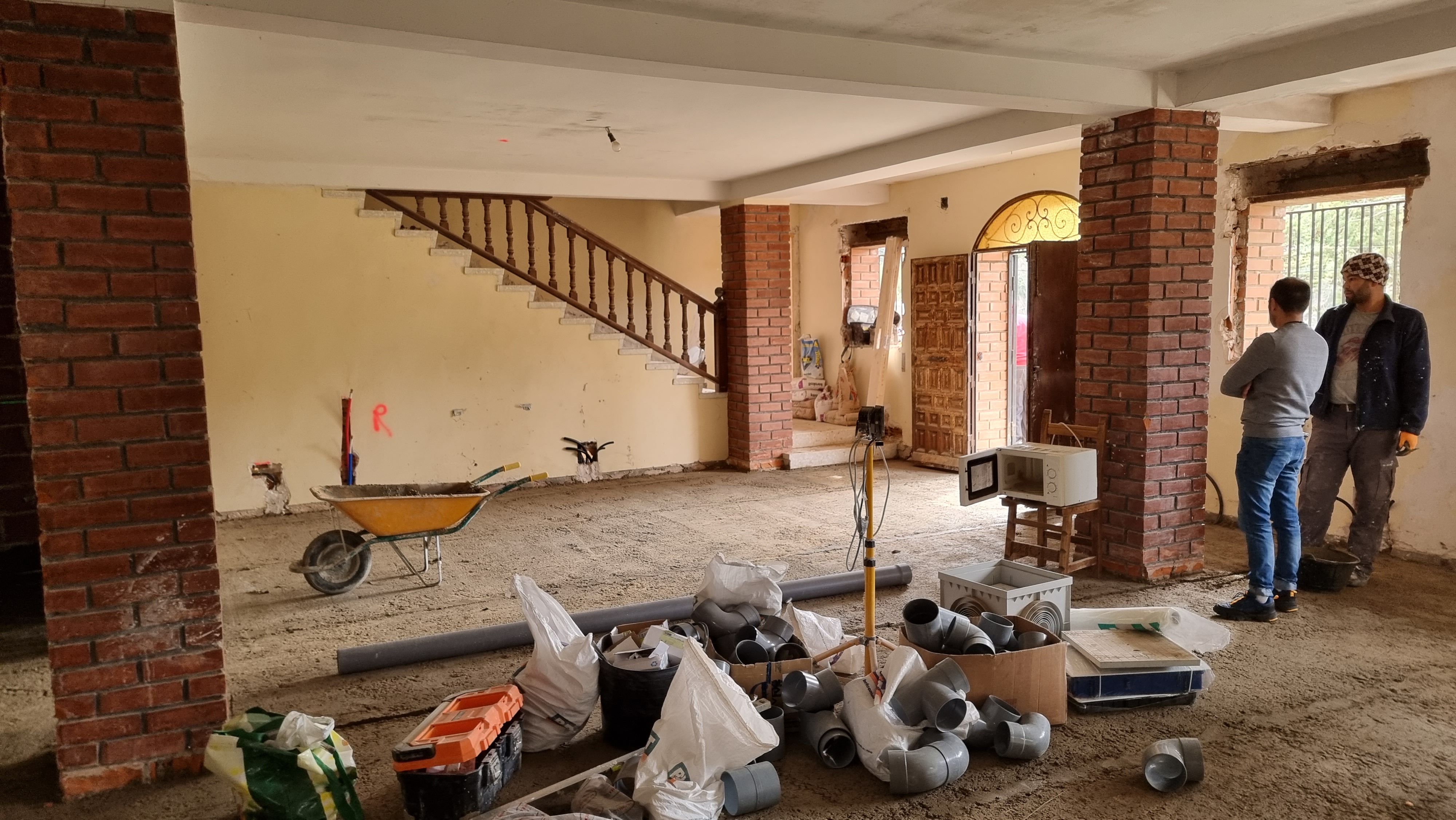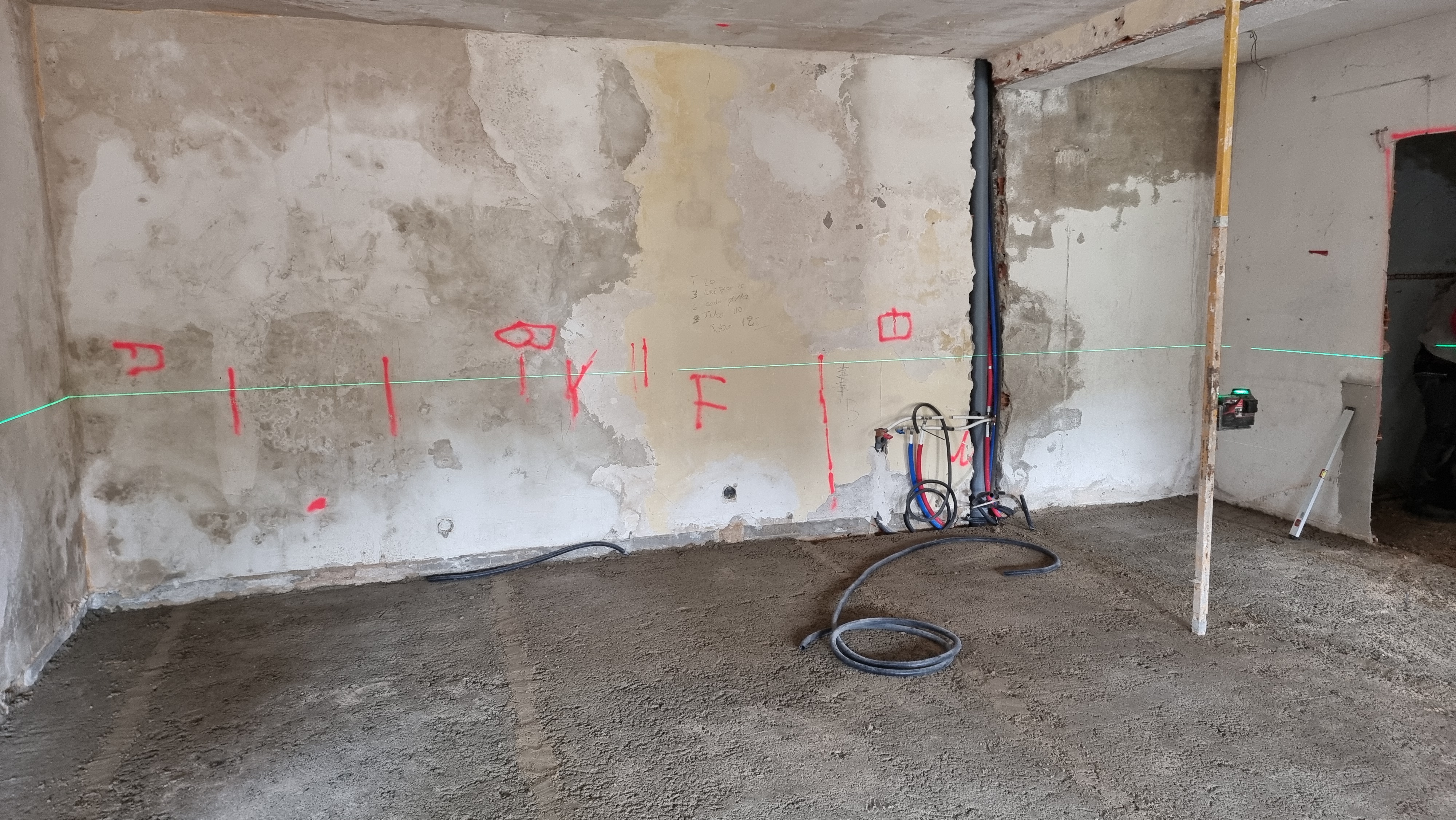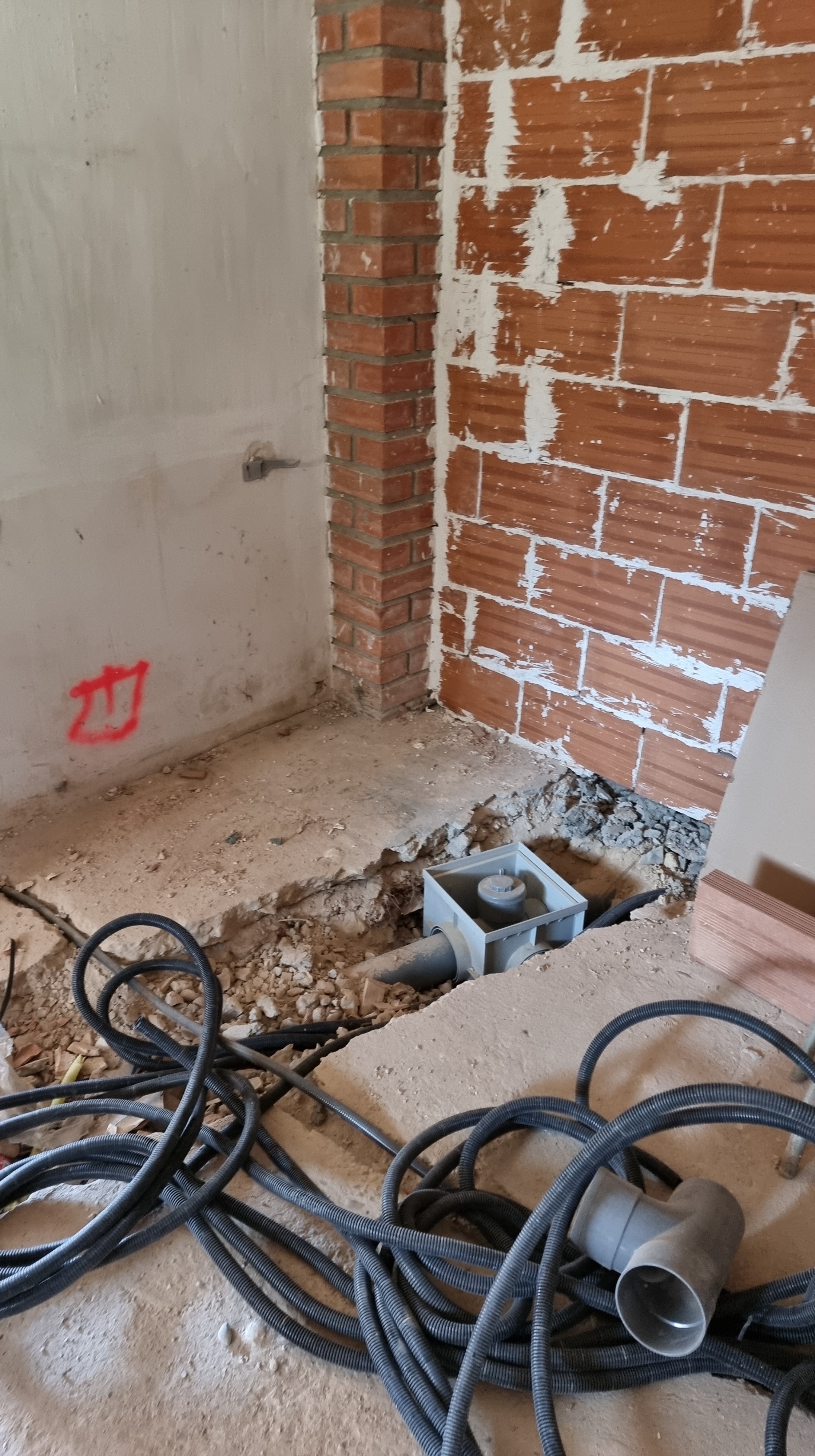 I look at the video. It was the back wall of the ground floor. The work had recently started and everything was broken and dusty. Everything looked fine, but it only took a couple of seconds to see an unusual movement on the wall. It was a waterfall, rushing down from the upper floor to the lower floor.