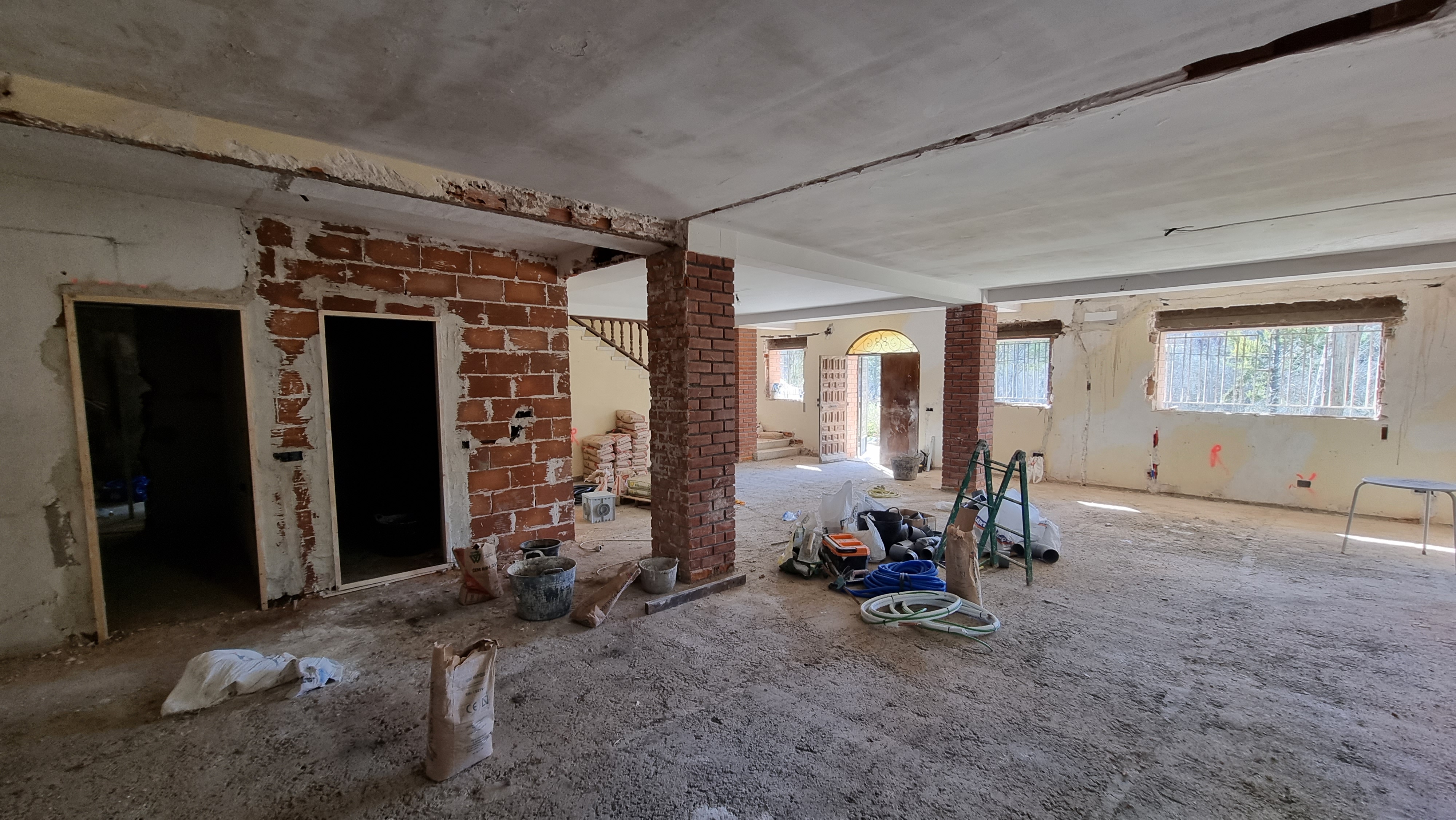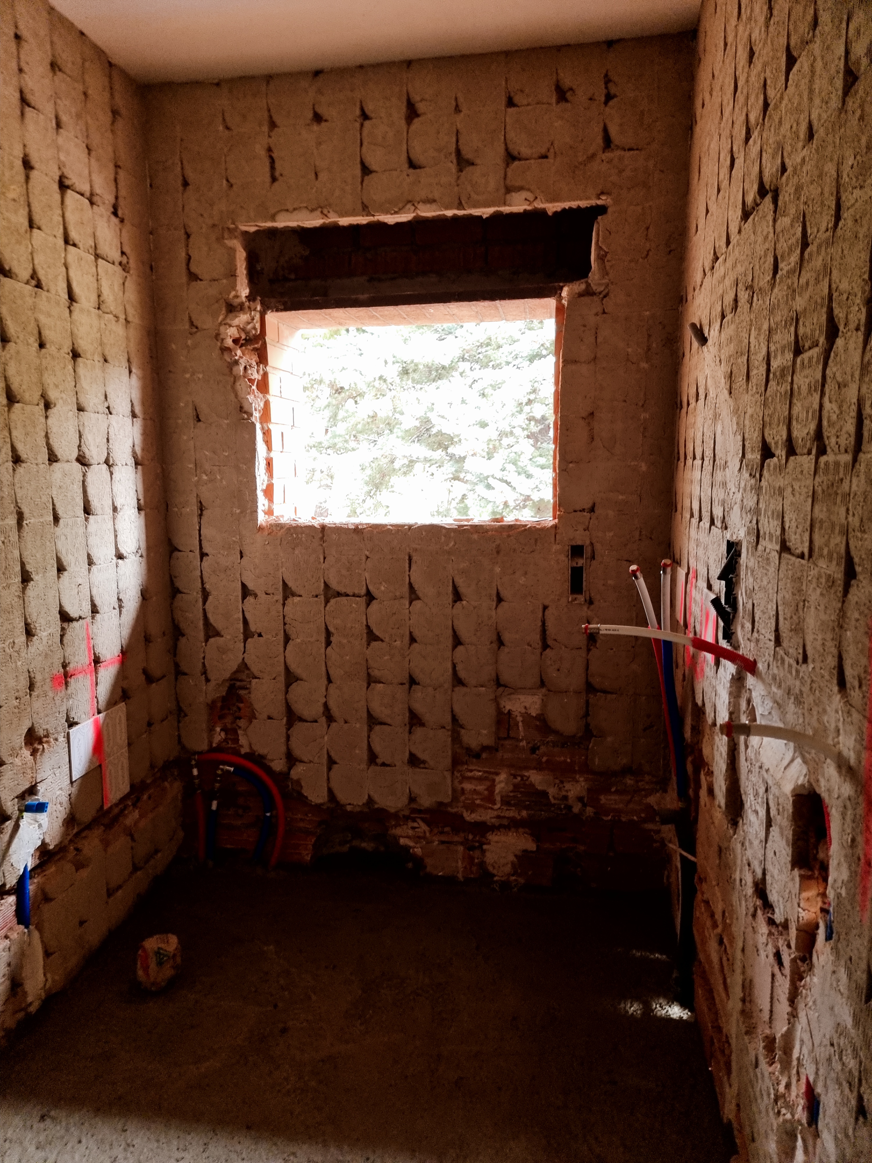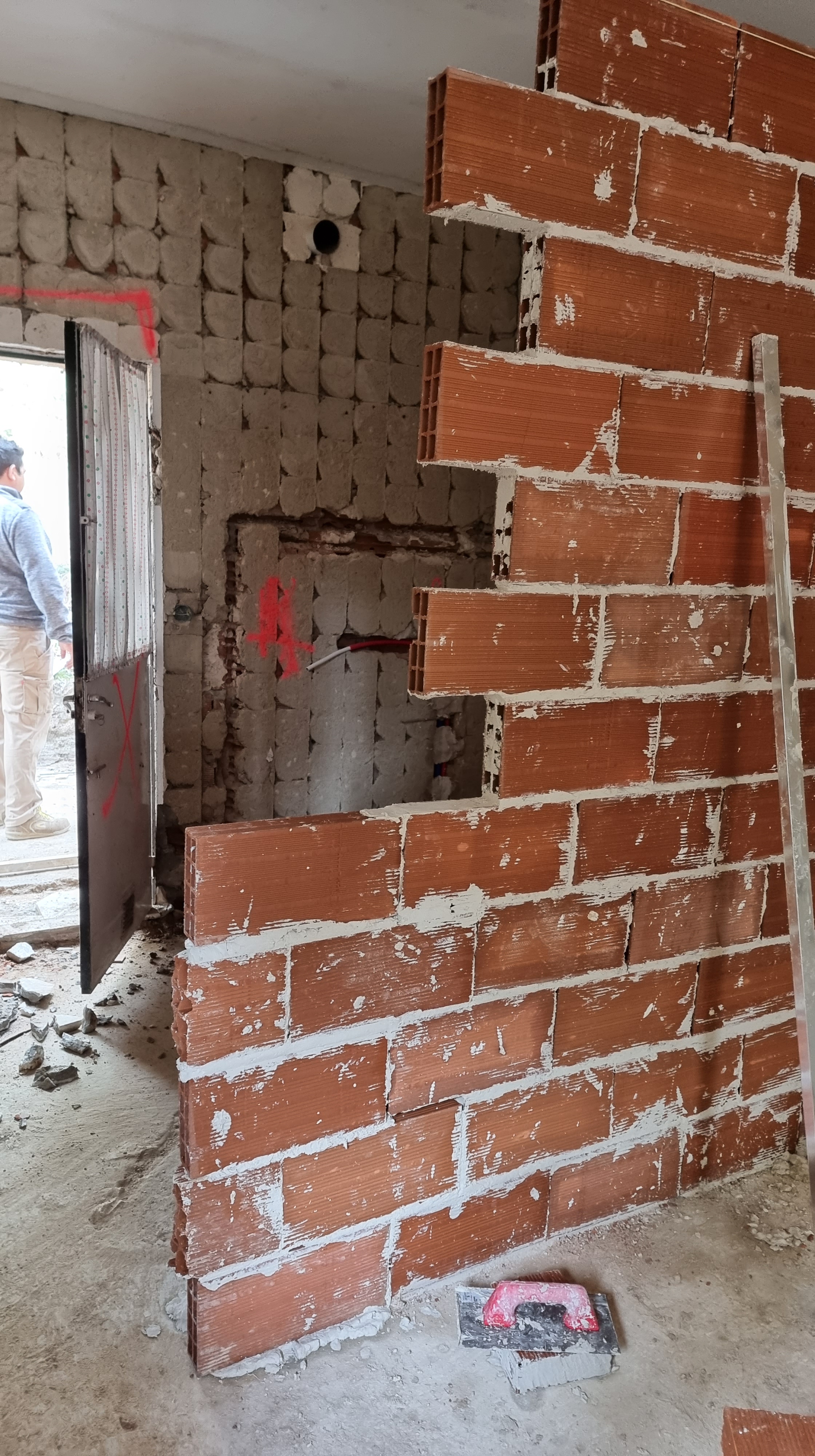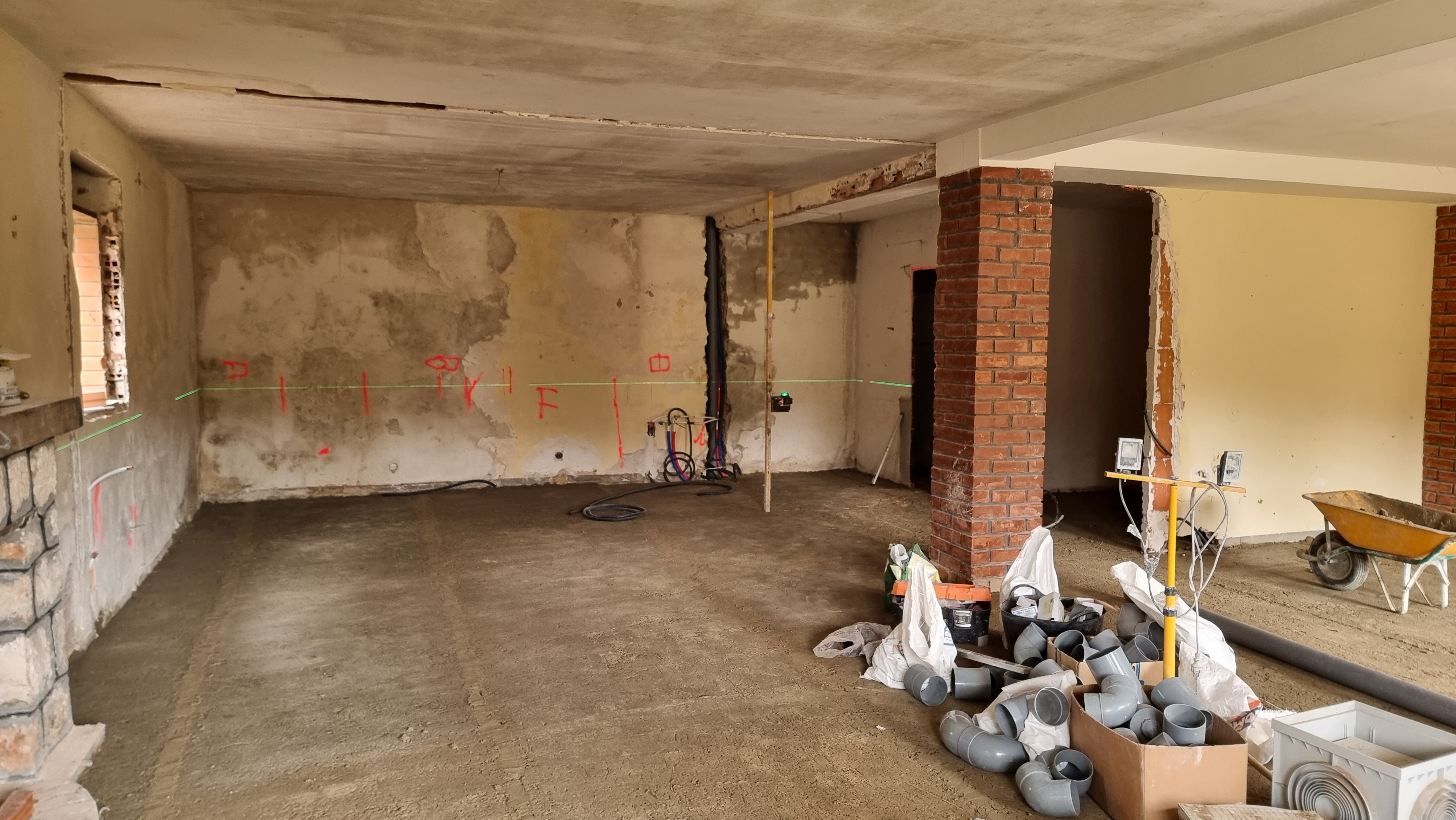 I look at the video. It was the back wall of the ground floor. The work had recently started and everything was broken and dusty. Everything looked fine, but it only took a couple of seconds to see an unusual movement on the wall. It was a waterfall, rushing down from the upper floor to the lower floor.