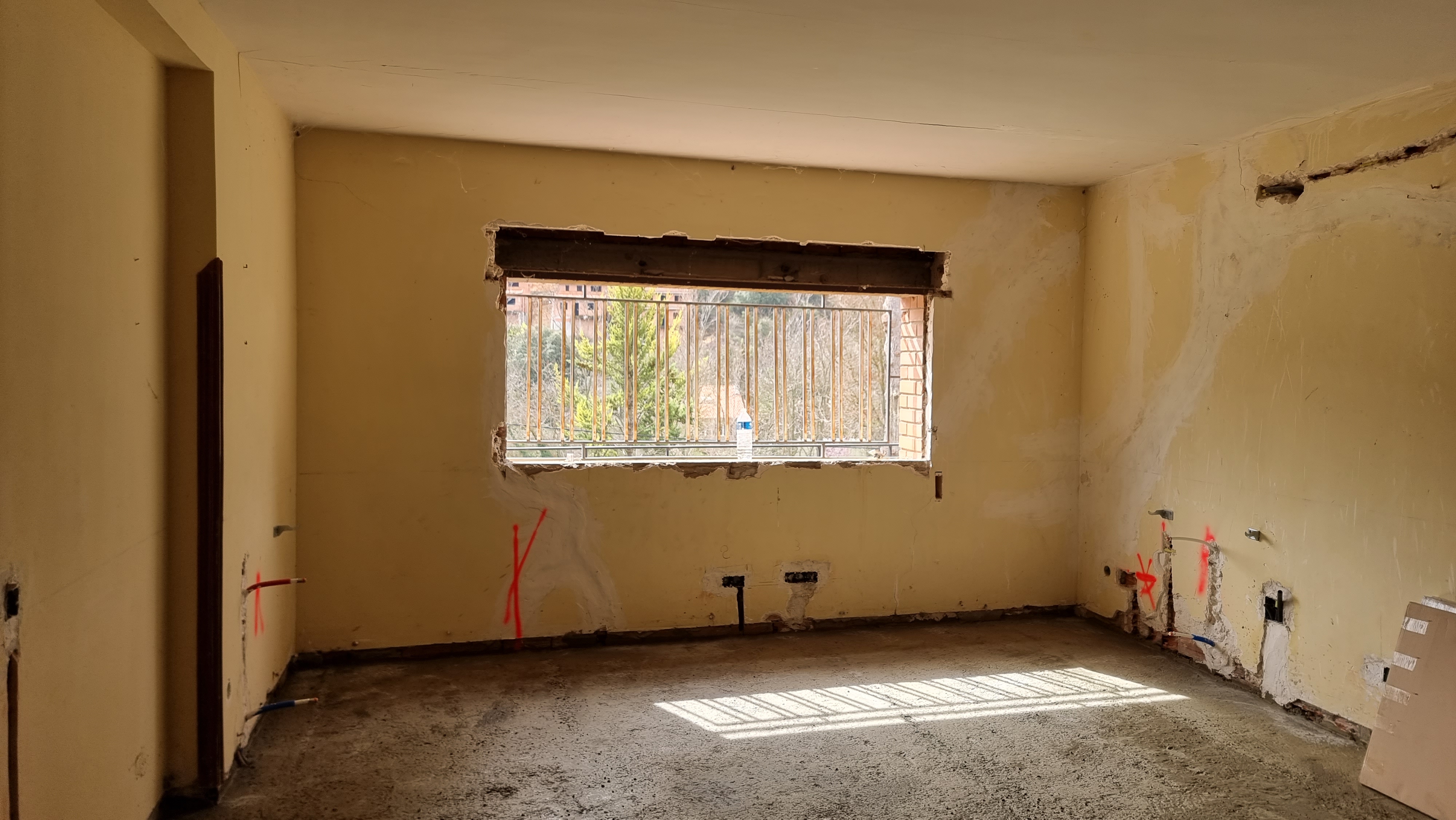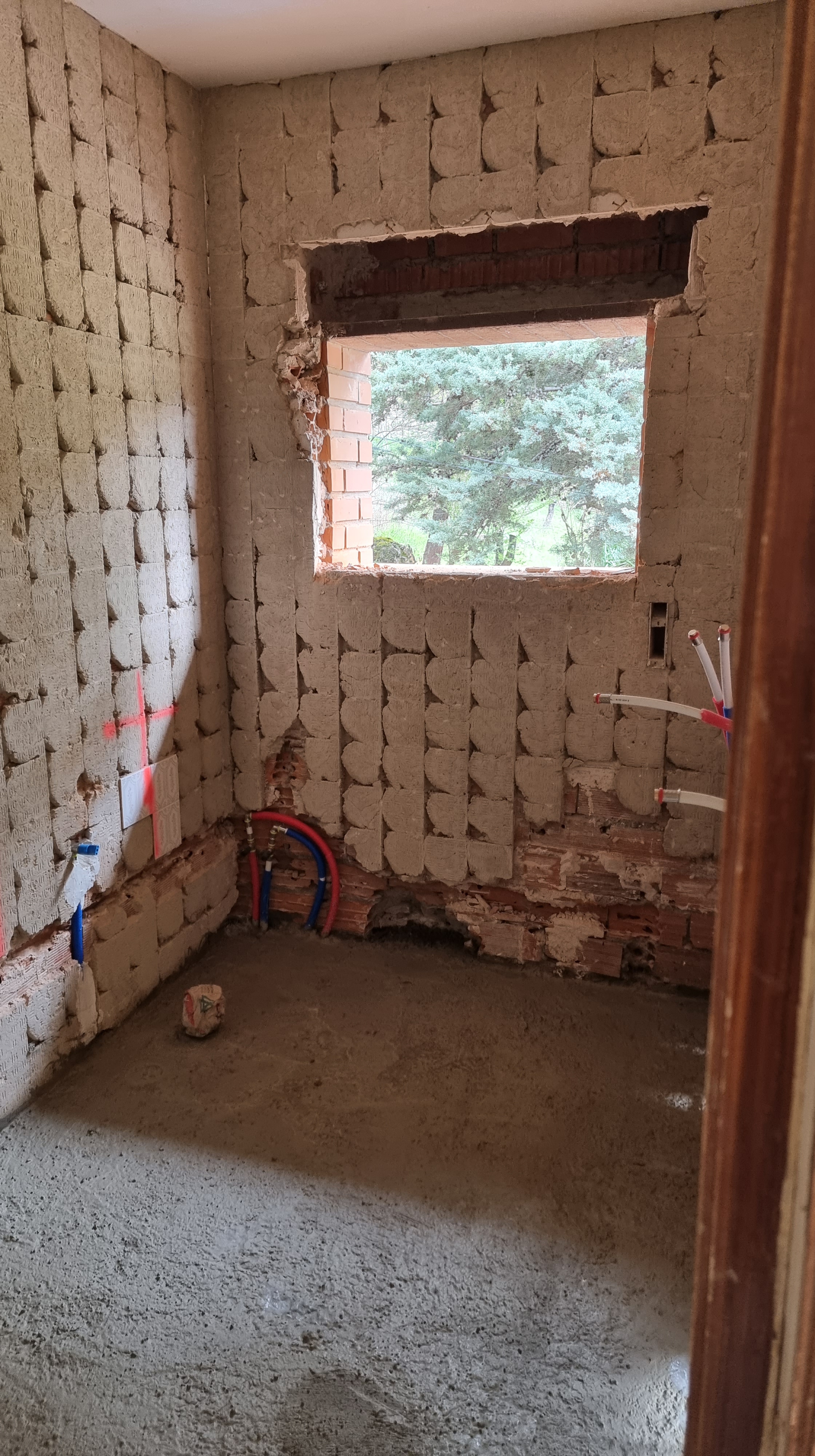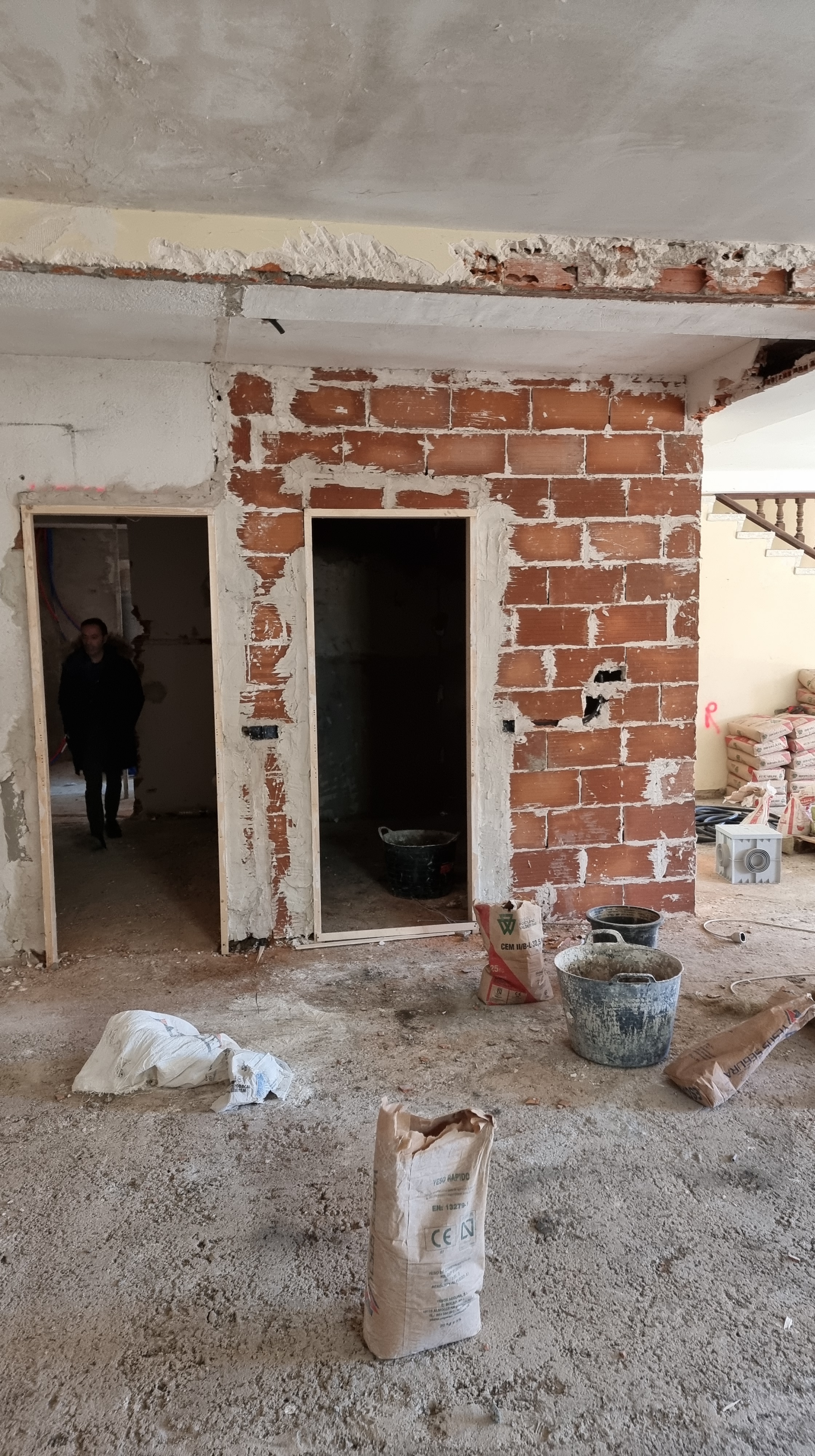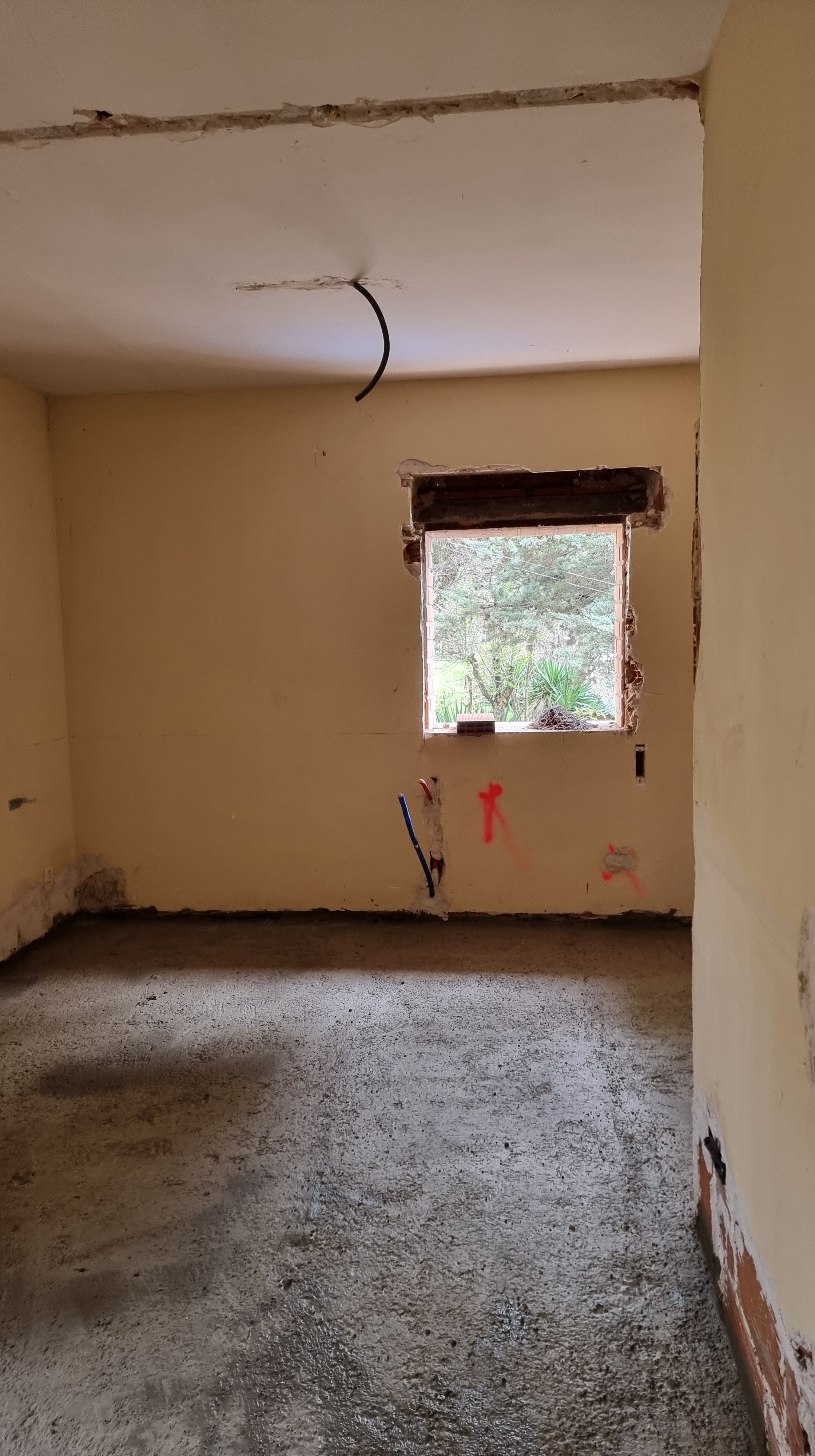 I look at the video. It was the back wall of the ground floor. The work had recently started and everything was broken and dusty. Everything looked fine, but it only took a couple of seconds to see an unusual movement on the wall. It was a waterfall, rushing down from the upper floor to the lower floor.