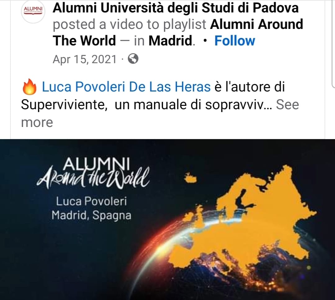 El fenomeno Super-viv(i)ente fue un éxito personal y profesional. No llegó a ser un best seller ya que sigo siendo una persona sin nombre ni contactos, pero solo con su significato, su impacto fue suficiente como para llegar independientemente hasta la Universidad de Padua, la más antigua institución de psicología en Italia y mi lugar de formación, la cual me honró con el título de «Antorcha de la Universidad» por los méritos profesionales internacionales, aunque no tenía contactos desde hace tiempo. Por eso tomé la decisión Vital de que mi destino era el de seguir escribiendo, a pleno trilingüismo.