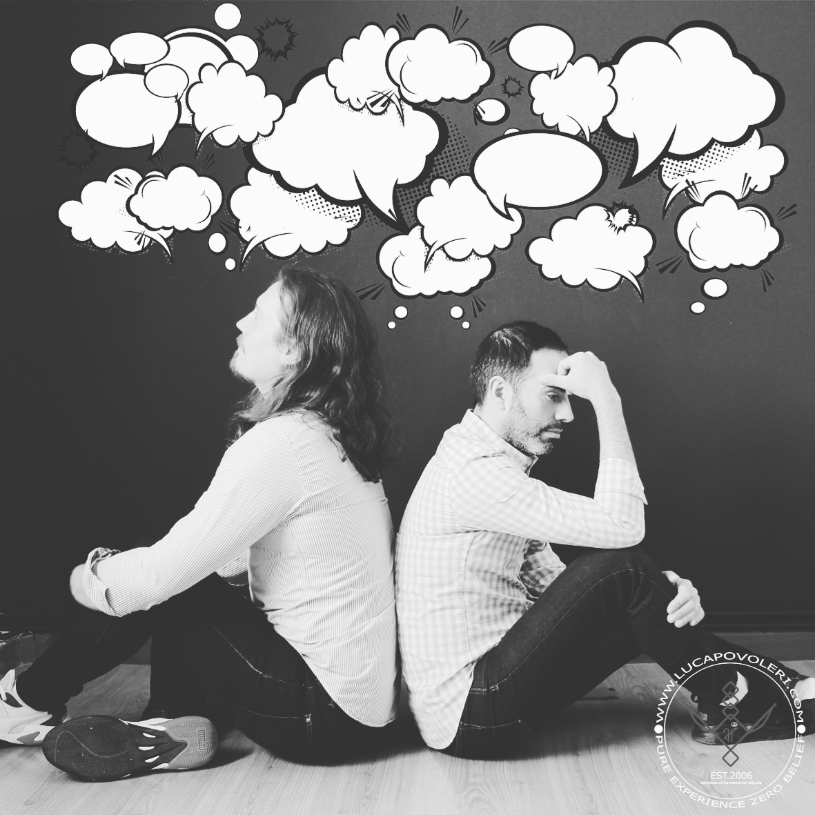 Como muchos, nosotros también estábamos en casa. Las producciones fotográficas habían sido canceladas y estábamos a la espera de que se restablecieran las actividades laborales del estudio. El COVID fue un desastre para el mundo, y ante esa escena, recibí un folleto del Colegio de Psicólogos Italiano con una decena de frases de apoyo para quienes permanecían en casa. Buena intención, ¿pero suficiente?